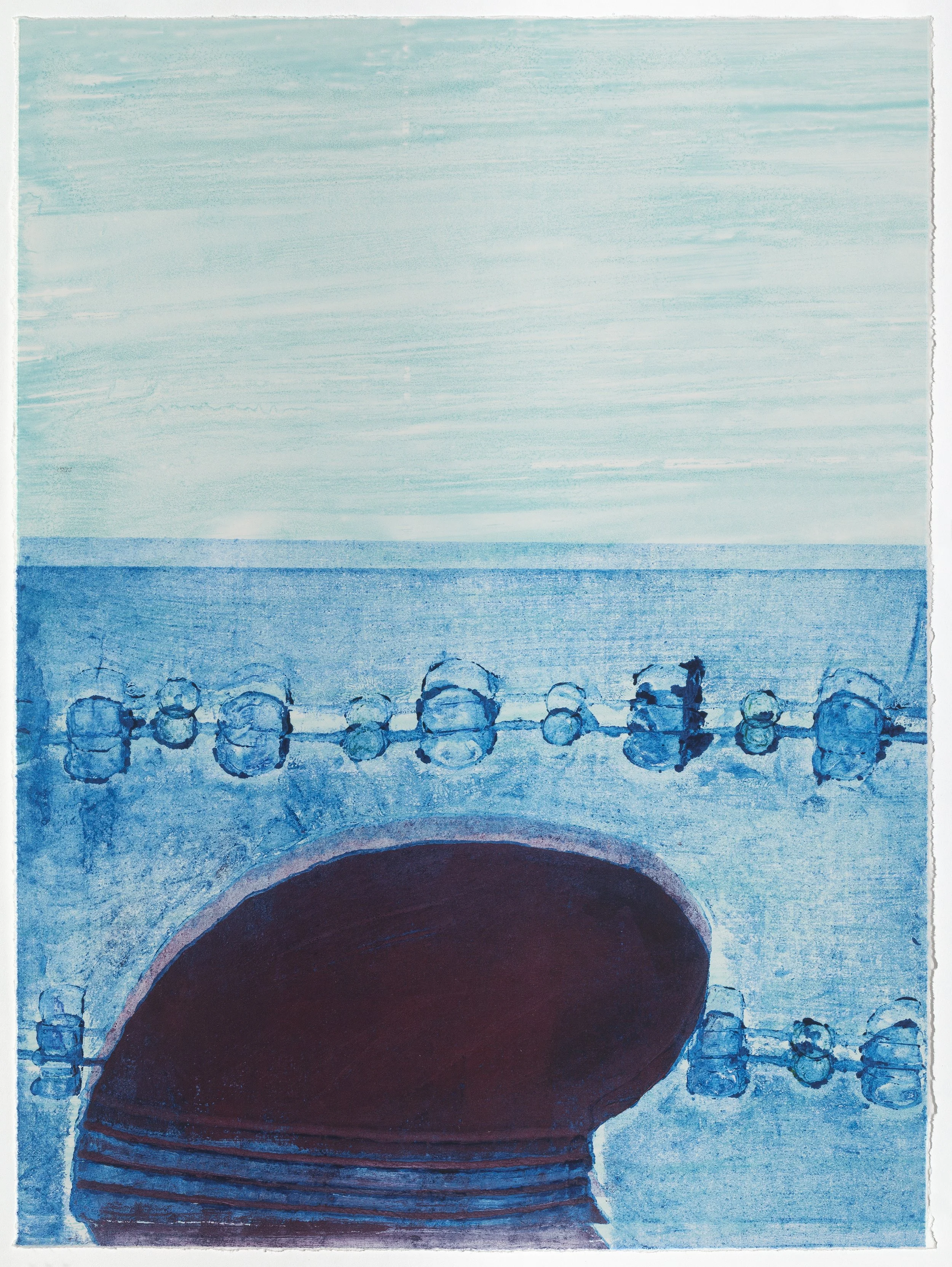 Brooke Stewart Art The Big Swimmers Cap, Deep Water, 2024 Watercolor, oil based collagraph on Arches 88 paper 16.25 x 12 in (41.28 x 30.48 cm)