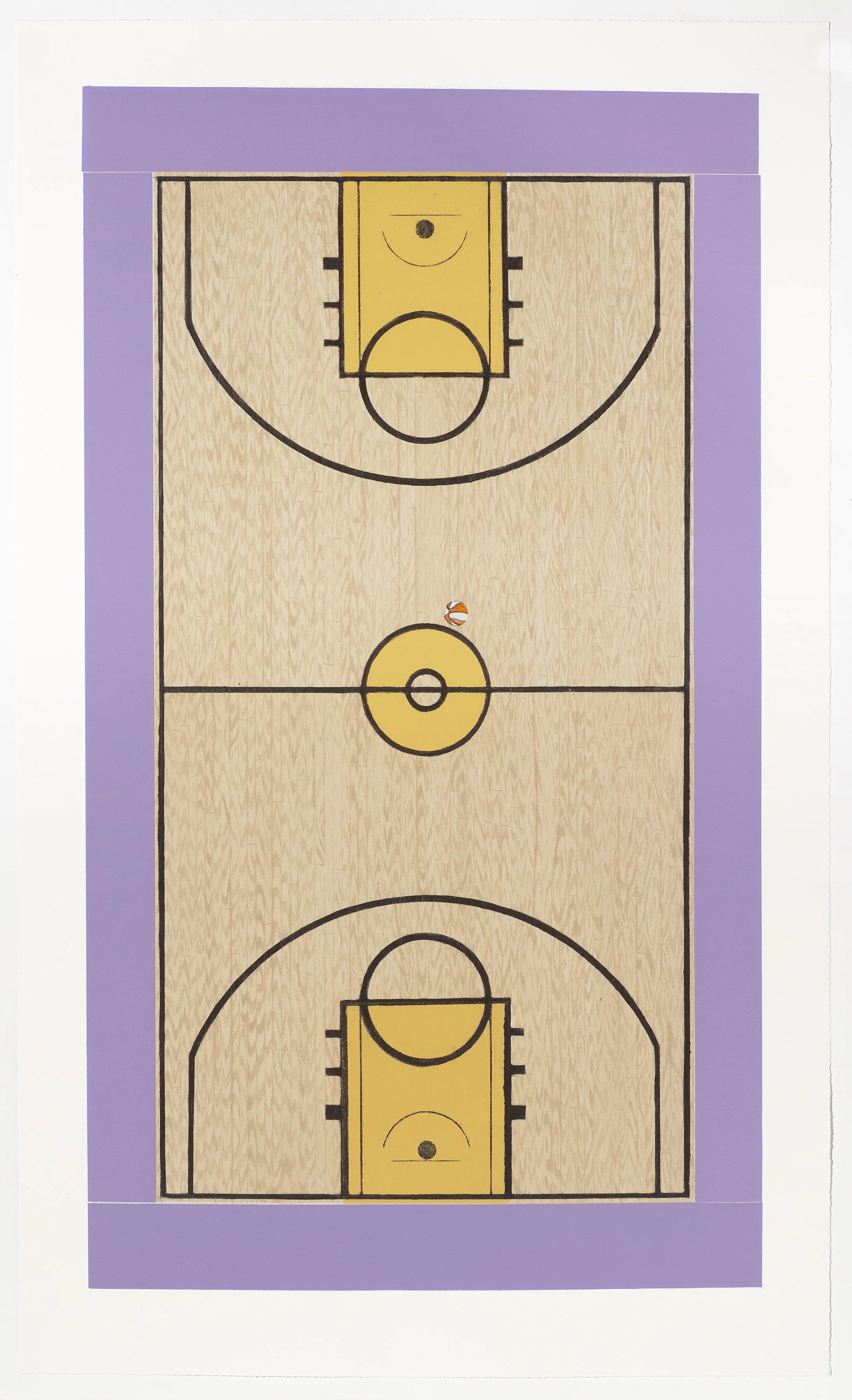 AP June 21, 1997, The first WNBA game’s tip off, 2025 Drypoint, watercolor monotype, collagraph and hand coloring 34.5 x 20 in (87.63 x 50.8 cm) Paper size: 39.5 x 24 in (100.33 x 60.96 cm)